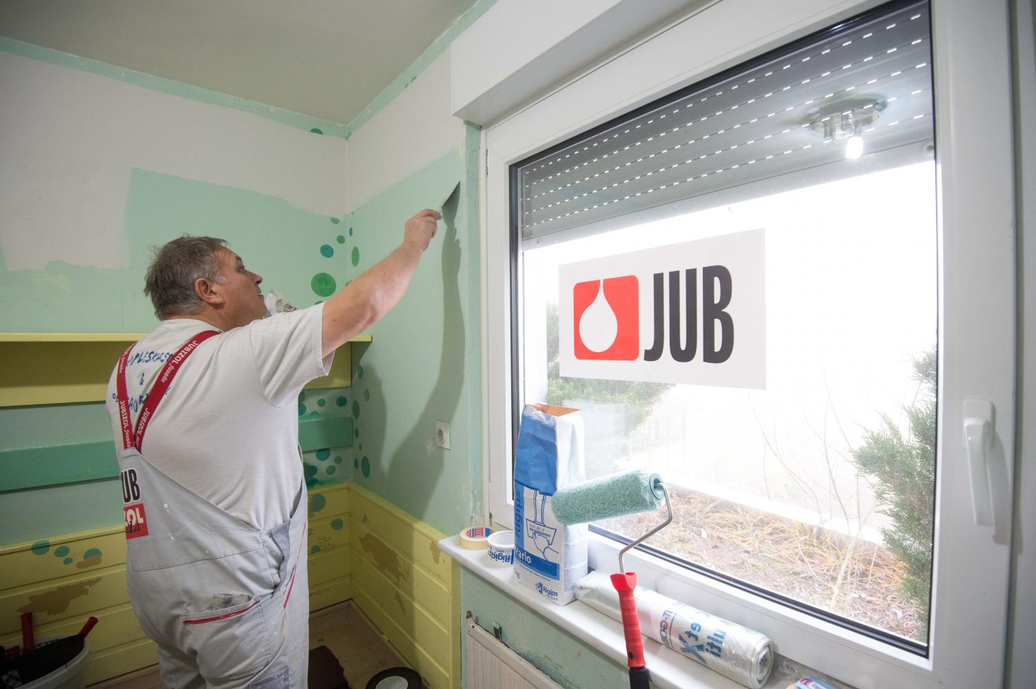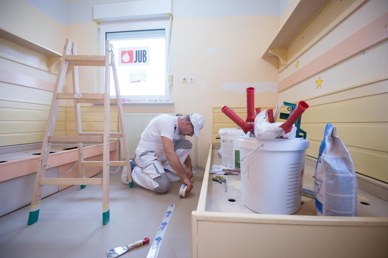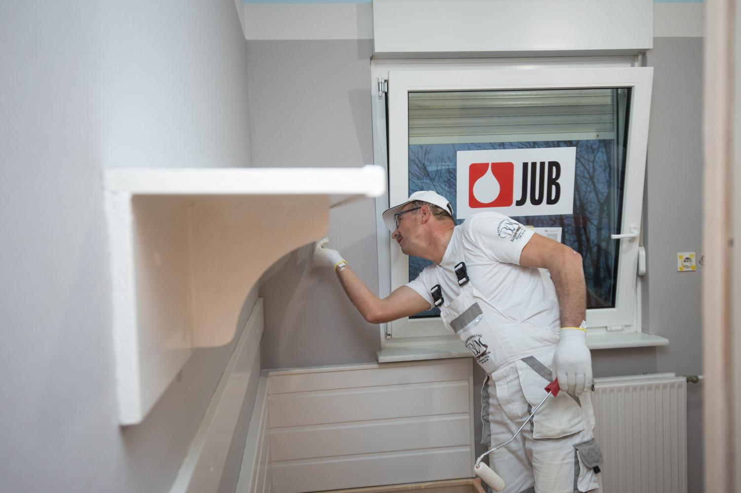 ''Letos smo za prenovo 2.300 m² zidnih in 450 m² lesenih in kovinskih površin v JUB-u zagotovili 800 litrov barv iz družine JUPOL in premazov iz družine JUBIN,'' je poudaril Željko Kovačević, direktor družbe JUB, ki akcijo slikopleskarjev podpira že vseh 19 let. ''V skoraj dveh desetletjih, odkar sodelujemo s slikopleskarji v tej akciji, smo skupaj prenovili prostore vrste šol, vrtcev, bolnišnic in porodnišnic, z našimi okolju prijaznimi barvami in premazi pa so njihove spretne roke prepleskale že za okoli 90.000 m² zidnih in drugih površin. Ponosni smo, da bomo tokrat lahko razveselili prav otroke, katerim morajo vlogo družine in staršev nadomeščati tukajšnji vzgojitelji in učitelji. Vsi, ki smo danes tu, se strinjamo, da bi vsak otrok moral imeti barvit in topel dom, in če ga v okolju družine ni, ga jim moramo pomagati ustvariti drugi. Rezultatov današnje barvite prenove Enote Dom se bomo z njimi zato veselili prav vsi zaposleni v JUB-u.''