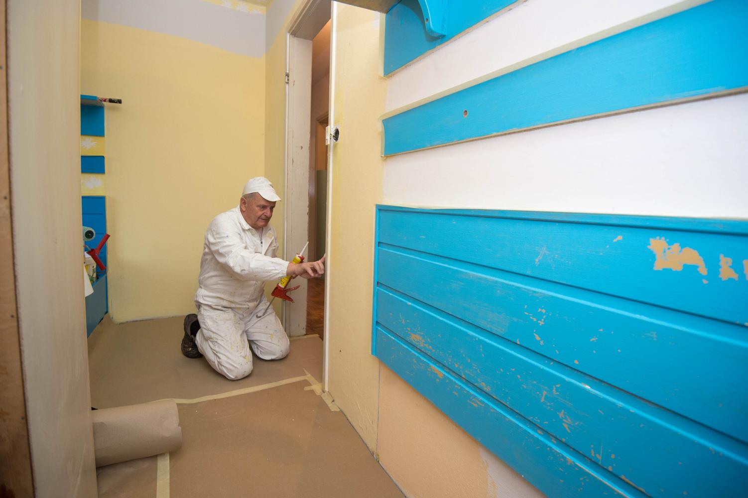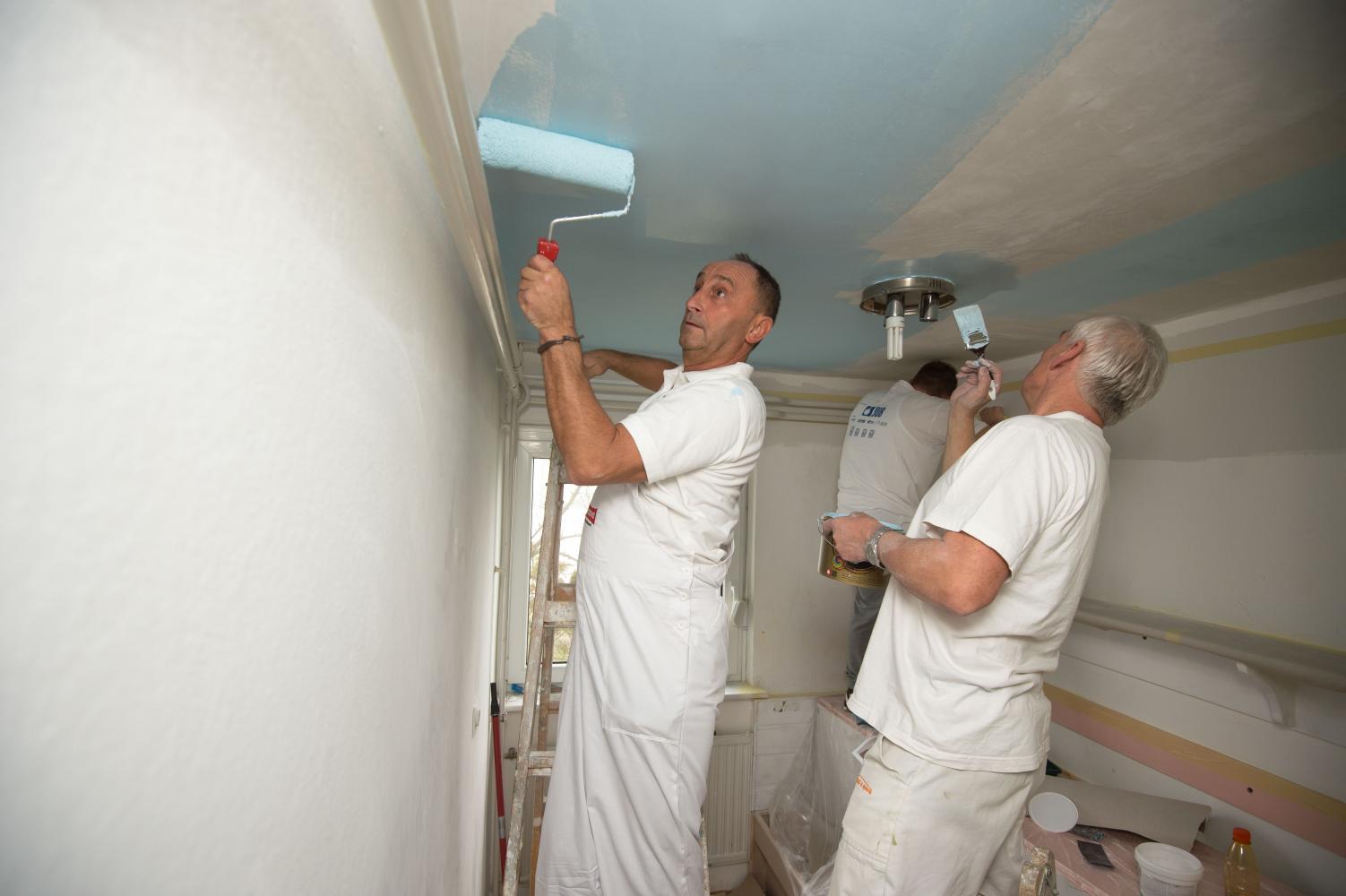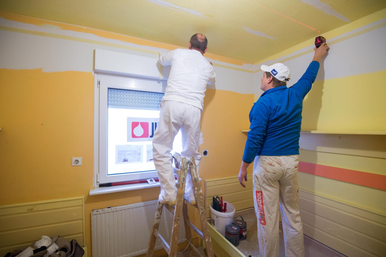 Dela so v sobah in na hodnikih in v drugih prostorih intenzivno potekala do 17. ure. Slikopleskarji so morali zjutraj najprej zaščititi tla, podboje in okenske okvirje, zatem pa obdelati razpoke, zbrusiti površine, premazati podloge sten ter obdelati lesene obloge. Sledila je priprava barve ustrezne viskoznosti v zahtevanem odtenku, ki so ga za vsak prostor posebej v svoji barvni študiji določili JUB-ovi arhitekti. Slikopleskarji so čez dan obdelali tudi vratne podboje, ustrezno pa so premazali tudi 16 novih vratnih kril, po končanju del pa še dokončno očistili prostore. V osrednji avli, ki združuje vseh 6 bivalnih enot so se s slikopleskarskimi veščinami seznanili tudi tamkajšnji učenci.