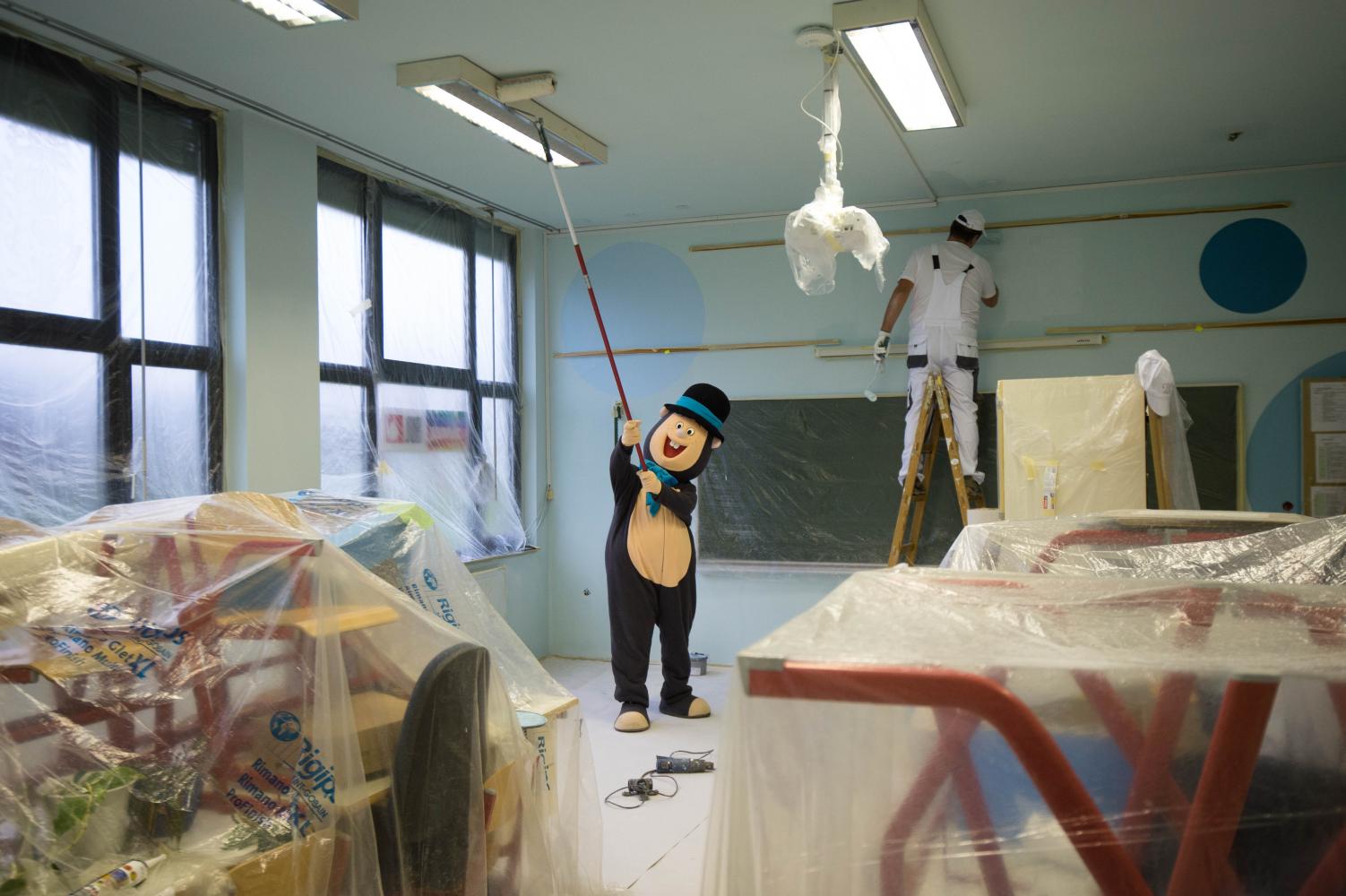V osnovni šoli Nove Fužine na Preglovem trgu v Ljubljani je v petek, 23.11.2018, v organizaciji Obrtno-podjetniške zbornice Slovenije (OZS) potekala letošnja jubilejna, že 20. humanitarna akcija slikopleskarjev, pleskarska dela v 20 šolskih učilnicah in na hodnikih pa so potekala od 8. do 17. ure. Na delu je bilo 120 slikopleskarjev, od tega 38 tujih, vsi skupaj pa so čez dan prepleskali kar 5.000 kvadratnih metrov stenskih in stropnih površin.