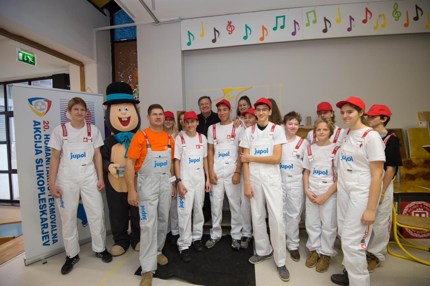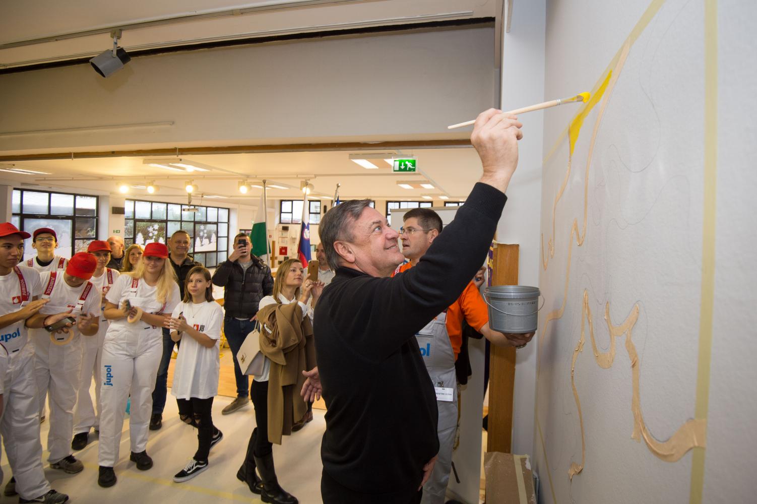 Medtem ko so učenci 8. in 9. razredov iz treh ljubljanskih osnovnih šol spoznavali poklic slikopleskarja in se tudi sami lotili kreativnega ustvarjanja mozaikov z barvami, je šolo zjutraj obiskal tudi ljubljanski župan Zoran Janković, ki je v veliki avli šole na veselje prisotnih šolarjev tudi sam poprijel za čopič in pobarval del stene, ki bo učence simbolično spominjala na to jubilejno humanitarno akcijo in barvito prenovo objekta.